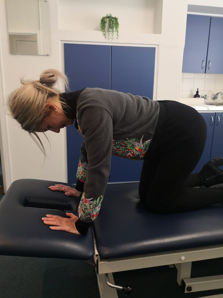 Start on your hands and knees with your hands under your shoulders and knees under your hips. Your elbows should be straight and your knees hip width apart.